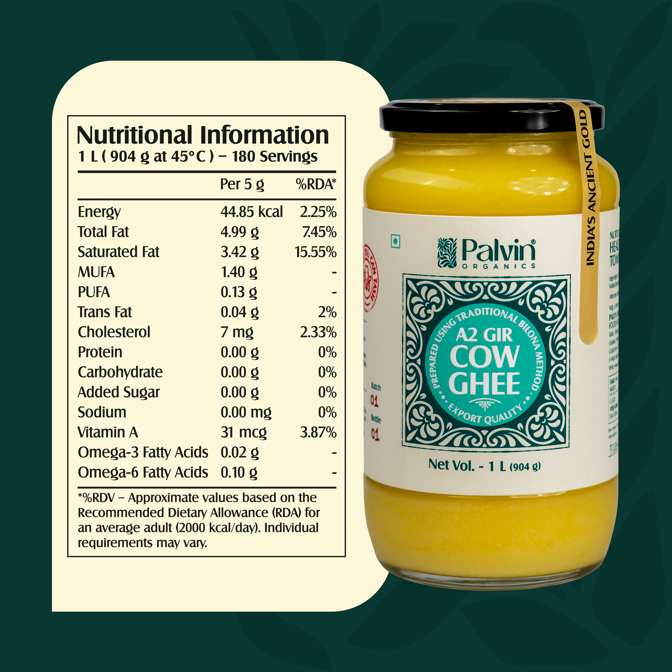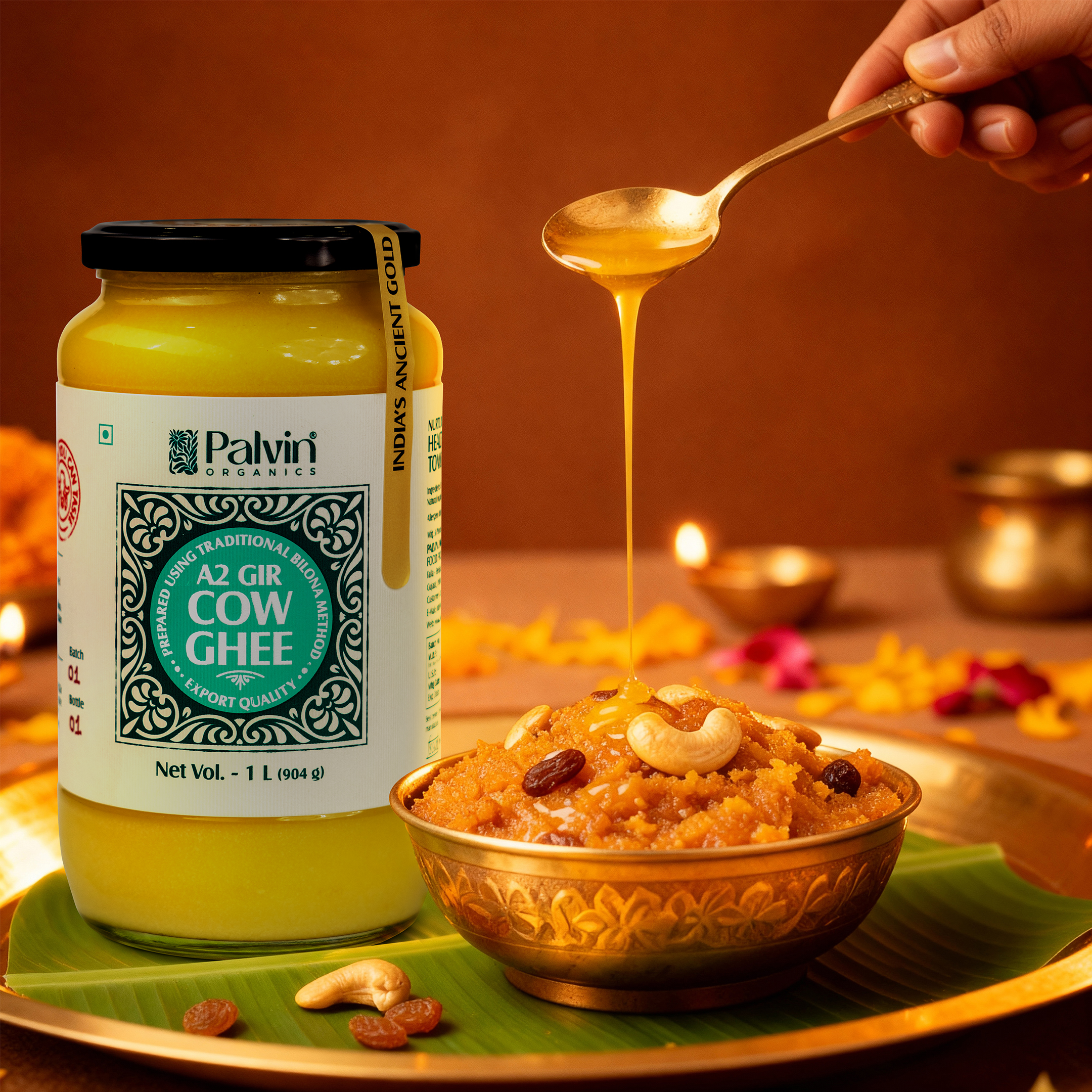 Experience the purity of tradition with Palvin A2 Pure Gir Cow Ghee, made from the milk of native Gir cows using the authentic Bilona method. Every drop is slow-churned from curd, not cream — ensuring rich aroma, golden texture, and unmatched nutrition.